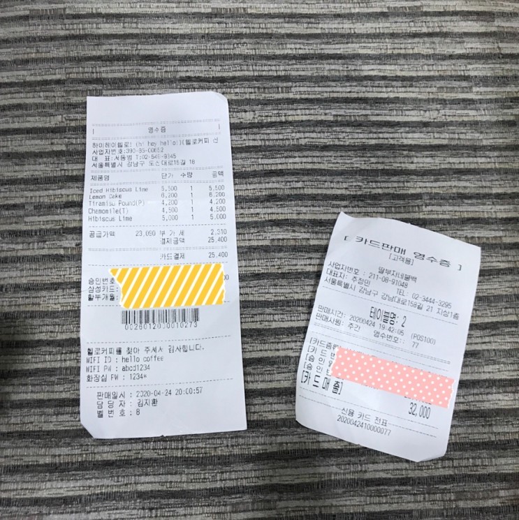 오늘은 집에 굴러다니는 영수증으로