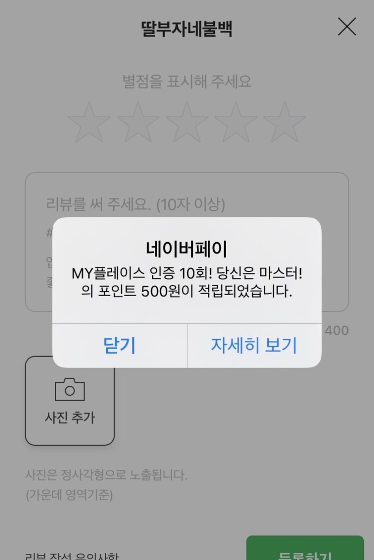 첫 사진 인증 포인트 500,